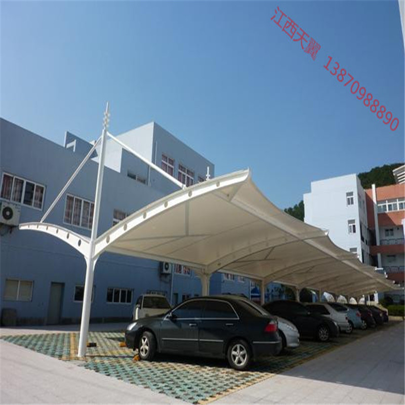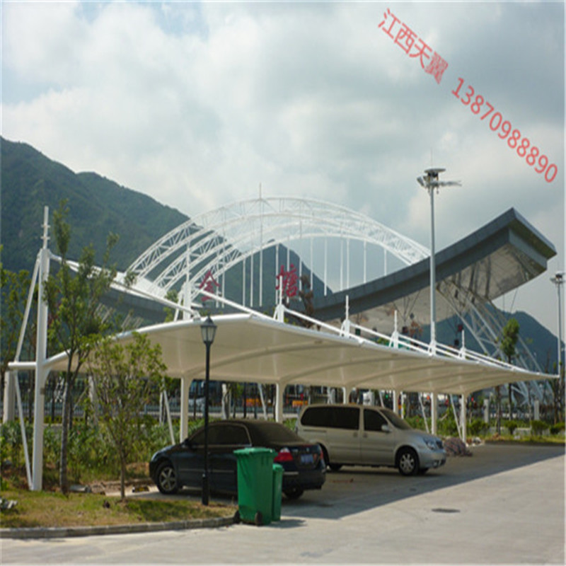 膜结构车棚是汽车、电动车的一种常见的遮阳棚,目前地上停车场、公园景区和住宅小区都会采用膜结构车棚,膜结构车棚和环境场所的融合性比较好,可以说是一种百搭的造型,另外样式多样,相比其他材料结构的车棚要美观,而且使用寿命长,不用维护,是广大用户青睐的主要原因。